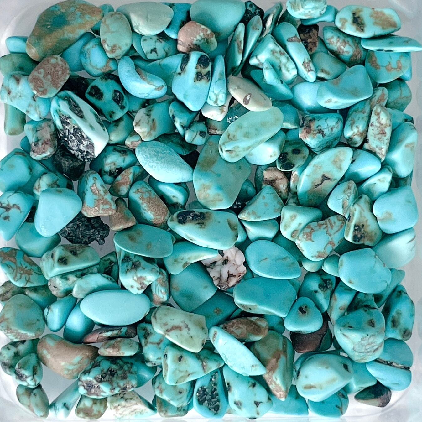 真ん中のターコイズ以外はターコイズカラーとなり天然石ではありません。